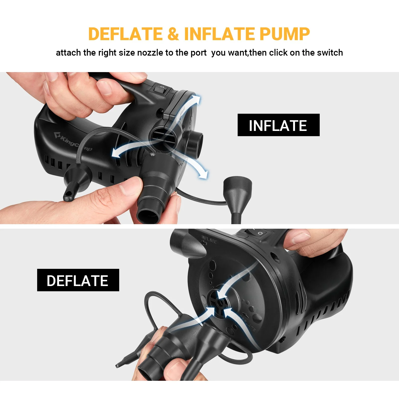 Includes a full set of nozzles accommodate a wide range of inflatables
