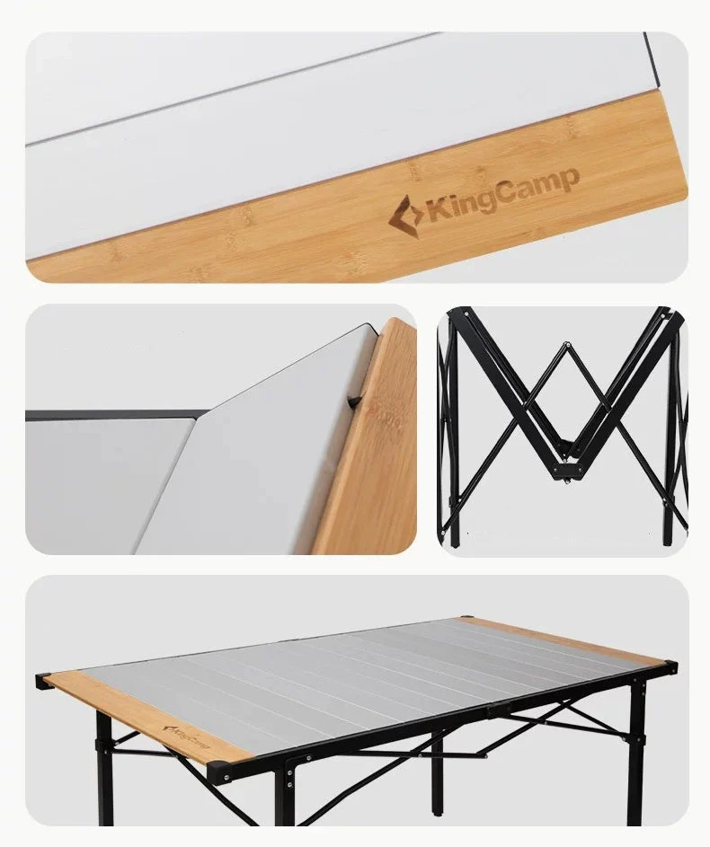 KingCamp Hybrid Aluminum Roll-Top Table with Bamboo Extensions - Portable, Durable, and Multi-Functional for 4-6 People, Perfect for Camping, Barbecues, and Outdoor Gatherings